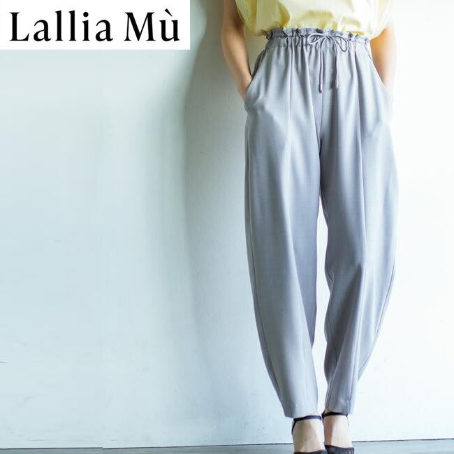 Lallia mu ラリアムー / ギャザー ウエスト カーブライン パンツ 36(S) / ライトグレー ブラック 黒 パンツ ロングパンツ イージーパンツ レディース ボトムス ロング丈 春 夏 きれいめ ウエストゴム オフィス カジュアル 洗える イージーケア ファッション キレカジ 大人カジュアル デート デイリー 着回し 服 2512715 【 返品交換送料無料 】