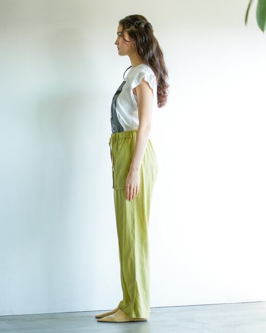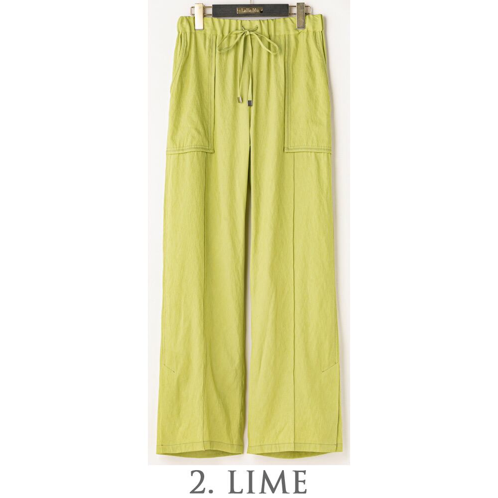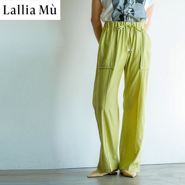 Lallia mu ラリアムー / アウトポケット イージーパンツ 36(S) / ライム パンツ ロングパンツ ワイドパンツ レディース ボトムス ロング丈 夏 きれいめ ウエストゴム オフィス 通勤 仕事 サイドスリット カジュアル 洗える イージーケア ファッション キレカジ 大人カジュアル デート デイリー 着回し 柔らかい 軽量 薄手 服 2512710 【 返品交換送料無料 】