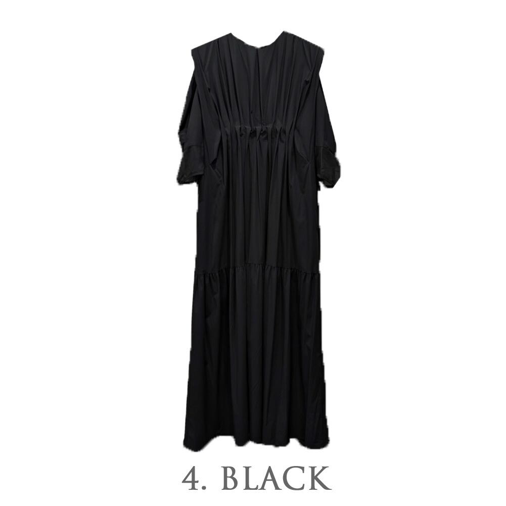 Lallia mu ラリアムー / シアー スリーブ タックスモッキング ワンピース / ブラック 黒 ワンピース ワンピ ロングワンピ レディース 半袖 ハーフスリーブ 秋 無地 クルーネック 速乾 通気性 洗える ポケット付き 服 ファッション きれいめ 大人カジュアル デート デイリー 大人可愛い 36(S)/38(M) 服 2513330【 返品交換送料無料 】 | MIO FIDANTO