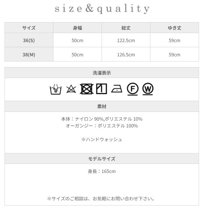 着丈のみ4cm異なる2サイズ展開。