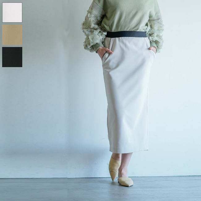 Lallia mu ラリアムー / パイピング ポケット タイトスカート / オフホワイト カーキ ブラック スカート ロングスカート レディース ボトムス ロング丈 Iライン 秋 冬 きれいめ ウエストゴム オフィス 通勤 伸縮性 洗える イージーケア ダンボール素材 服 ファッション きれいめ 大人カジュアル デート デイリー 大人可愛い 38(M) 服 2513803【 返品交換送料無料 】 | MIO FIDANTO
