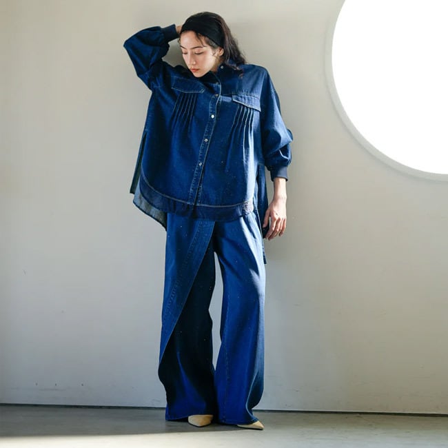 ☆10/16 再入荷☆ Lallia mu ラリアムー / 2way スリーブ デニム シャツ / ブルー インディゴ 青 紺 レディース トップス デニムシャツ 羽織り レギュラーカラー 長袖 秋 冬 カジュアル おしゃれ 洗える 袖口リブ プリーツ 柔らかい イージーケア 服 ファッション きれいめ 大人カジュアル デート デイリー 大人可愛い 38(フリーサイズ) 服 2513691【 返品交換送料無料 】 | MIO FIDANTO