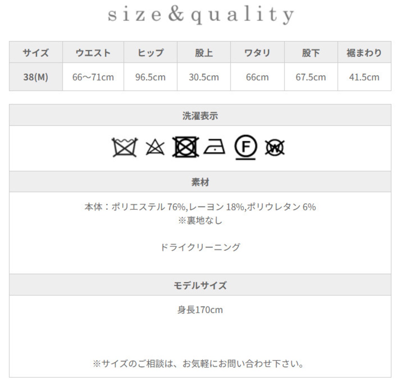 本体:ポリエステル 76%,レーヨン 18%,ポリウレタン 6%