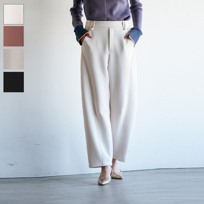 Lallia mu ラリアムー / カーブライン ポンチパンツ / オフホワイト コーラル グレージュ ブラック 黒 パンツ ロングパンツ レディース ボトムス ロング丈 秋 冬 きれいめ ウエストゴム オフィス 伸縮性 カーブパンツ 服 ファッション きれいめ 大人カジュアル デート デイリー 大人可愛い 38(M) 2513727【 返品交換送料無料 】 | MIO FIDANTO