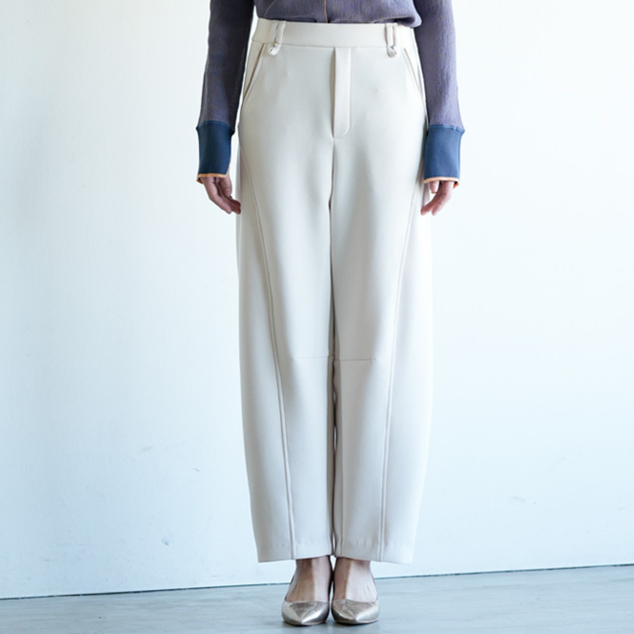 大人の女性にこそ似合う、美シルエットのカーブパンツ。