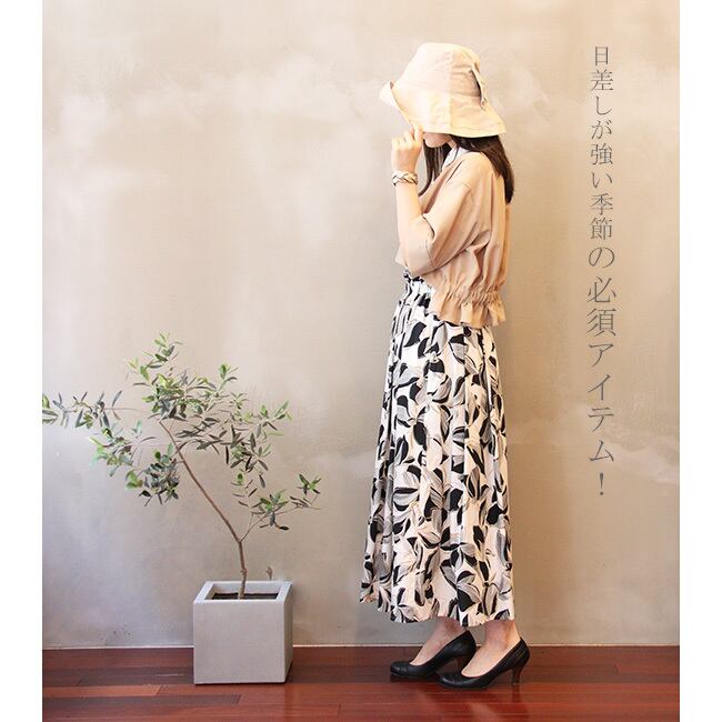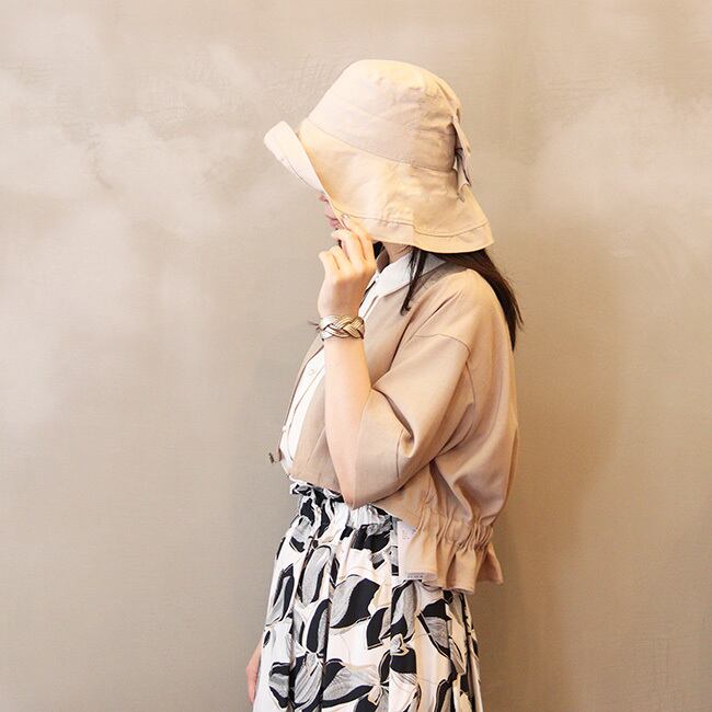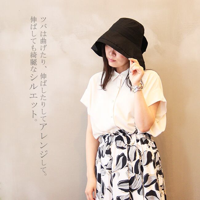 ツバは長めで、折り曲げてアレンジできるので、雰囲気を変えて楽しめます。