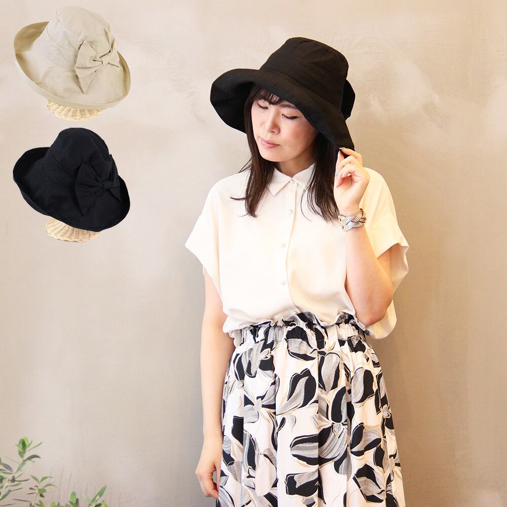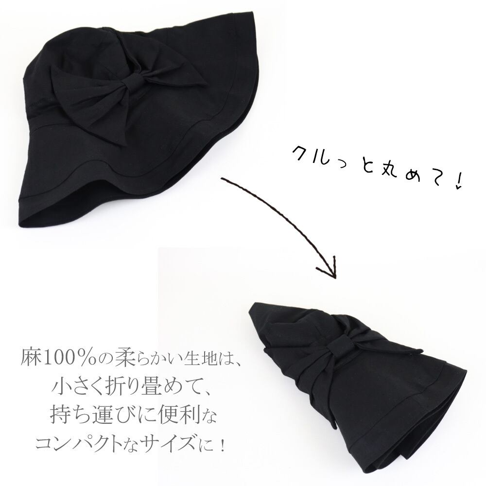Fruit Sugar ( フルーツジュガー ) / 折りたたみ可能!リネンリボンハット / レディース 大きいサイズ uv 折りたたみ つば広 リボン 夏 日除け 黒 ブラック ベージュ 帽子 ハット アウトドア 麻 春 夏 秋 冬 母の日 プレゼント ギフト 誕生日 頭周りのサイズ調節が可能 ( FS-001 ) 【返品不可】 | MIO FIDANTO