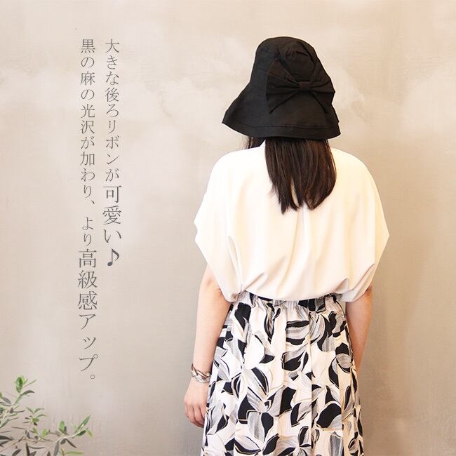 大きなリボンがポイントになった、天然素材、麻生地を使用した、