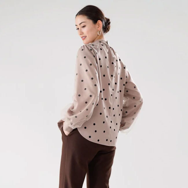 【10月中旬入荷予定】Lallia mu ラリアムー / チュールスリーブ ドット ブラウス / ベージュ ブラック 黒 レディース シャツ トップス プルオーバー スタンドカラー 長袖 秋 冬 おしゃれ オフィスカジュアル きれいめ フォーマル インナー 服 ファッション きれいめ 大人カジュアル デート デイリー 大人可愛い 38(フリーサイズ) 2514615【 返品不可 】 | MIO FIDANTO