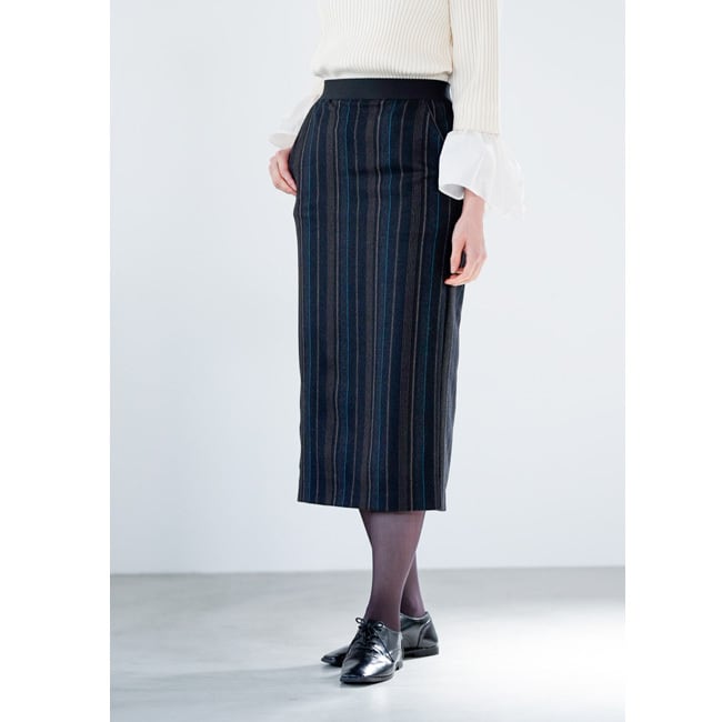【10月中旬入荷予定】Lallia mu ラリアムー / パイピングポケット タイトスカート / ブラック ストライプ 黒 スカート レディース ボトムス ロングスカート ロング丈 秋 冬 きれいめ ウエスト総ゴム ストレッチ オフィスカジュアル 通勤 服 ファッション きれいめ 大人カジュアル デート デイリー 大人可愛い 36(S) 38(M) 2514811【 返品不可 】 | MIO FIDANTO