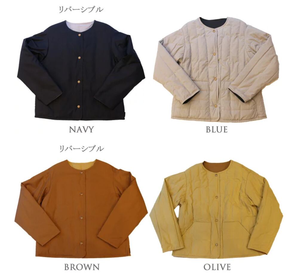 ZANTER ザンター JAPAN / ノーカラー ショート リバーシブルダウンコート BROWN/OLIVEのみ / ブラウン オリーブ ダウン ジャケット コート レディース アウター 秋 冬 長袖 無地 大人 防寒着 あったか 保温性 軽量 服 0312040 返品交換送料無料 | MIO FIDANTO