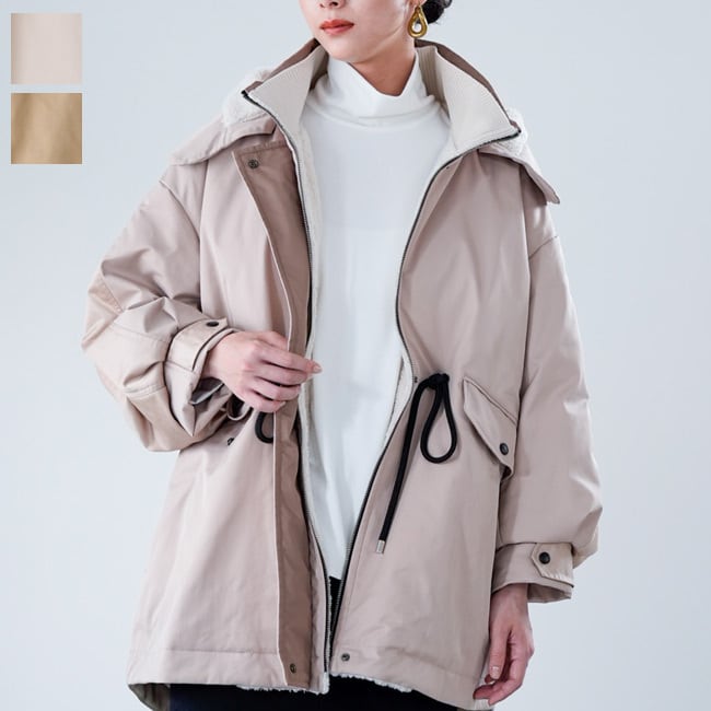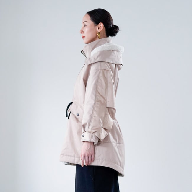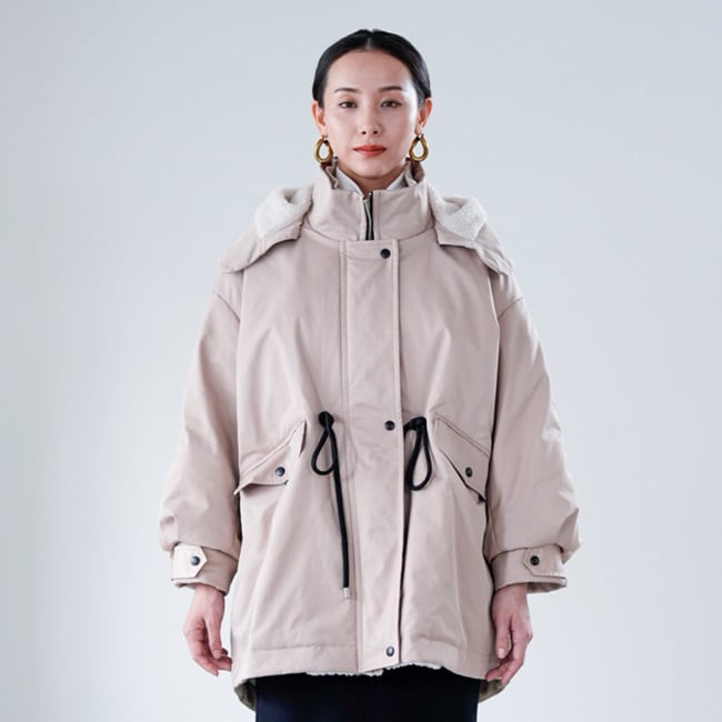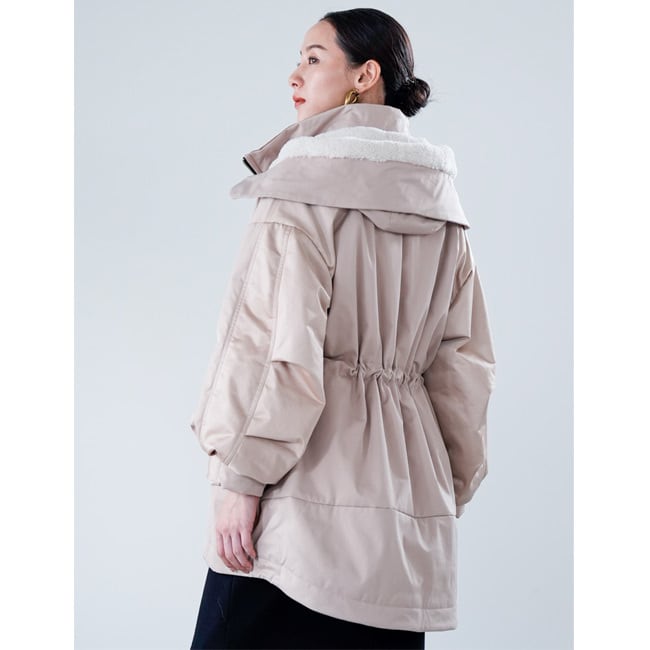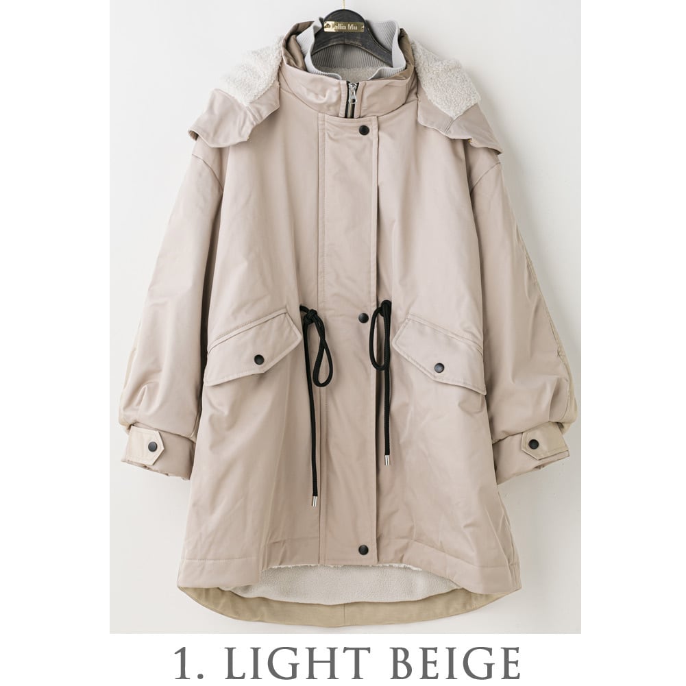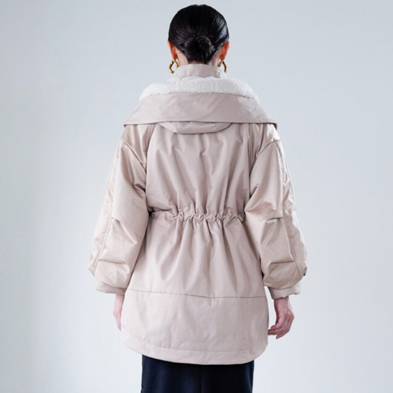 Lallia mu ラリアムー / ボアフード パファー ミドルコート / ライトベージュ ベージュ コート ジャケット レディース 秋 冬 アウター 羽織り 長袖 ミドル丈 ボア 中綿 無地 ゆったり 通勤 ポケット付き 保温性 軽量 服 ファッション きれいめ 大人カジュアル デイリー 着回し 大人可愛い 38(フリーサイズ) 2514137【 返品交換送料無料 】 | MIO FIDANTO