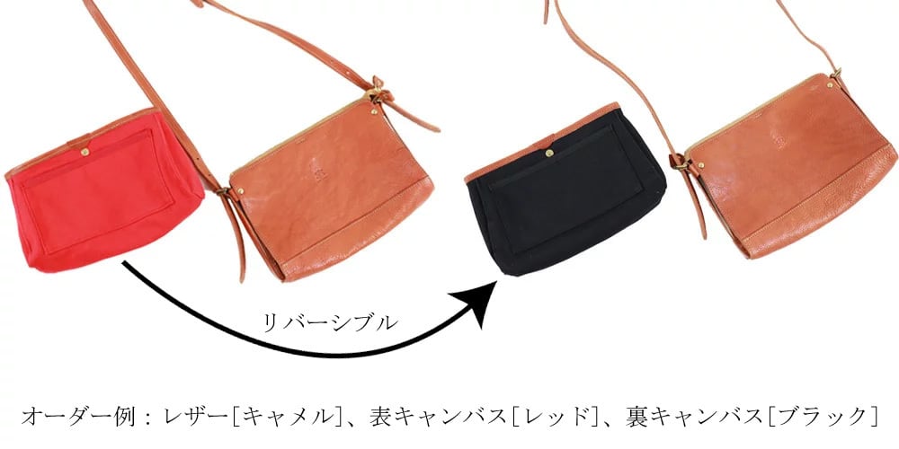 お好きなお色のレザーと キャンバスを選んでオーダーバッグ
