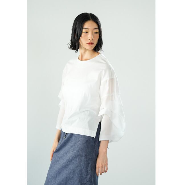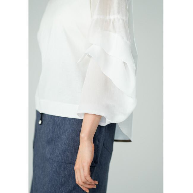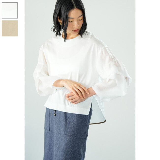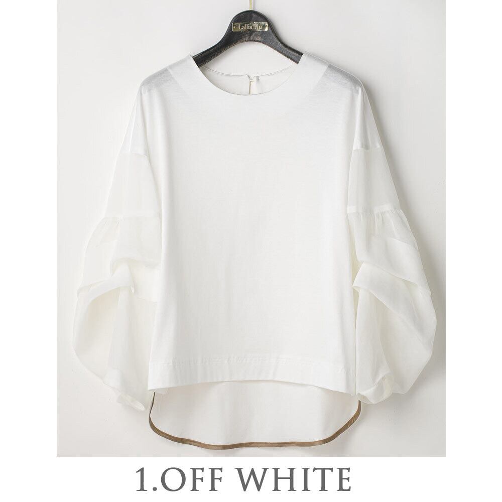 【 予約販売 】Lallia mu ラリアムー / シアー ウェーブ スリーブ カットソー / オフホワイト ベージュ 白 プルオーバー レディース トップス クルーネック 長袖 春 無地 カジュアル 洗える カットソーブラウス オフィス 仕事 服 ファッション きれいめ 大人カジュアル デート デイリー 大人可愛い 38(フリーサイズ) 2611593【 返品不可 】 | MIO FIDANTO
