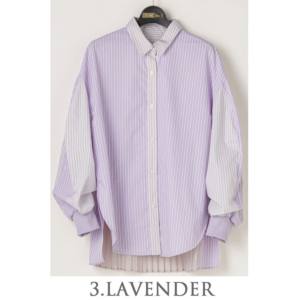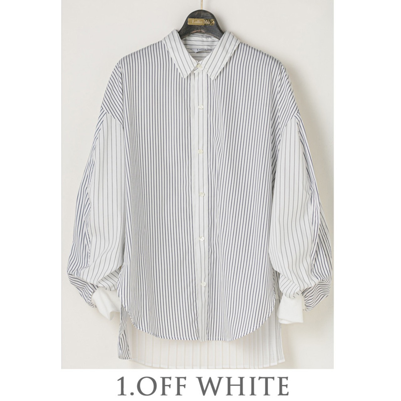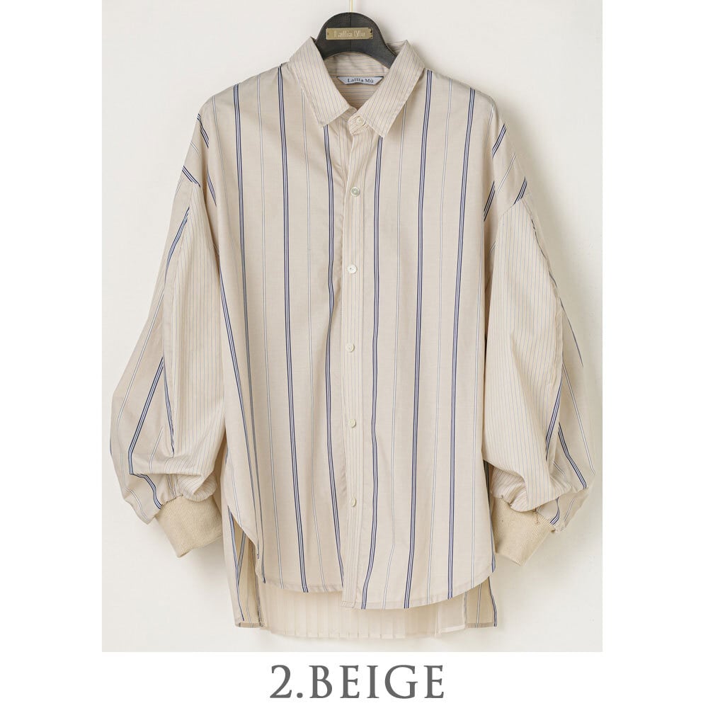 【 予約販売 】Lallia mu ラリアムー / バックプリーツ ストライプ シャツ / オフ ホワイト ベージュ ブルー 白 レディース トップス 羽織り レギュラーカラー 長袖 柄シャツ 春 カジュアル おしゃれ 袖口リブ プリーツ レイヤード 服 ファッション きれいめ 大人カジュアル デート デイリー 大人可愛い 38(フリーサイズ) 2611625【 返品不可 】 | MIO FIDANTO