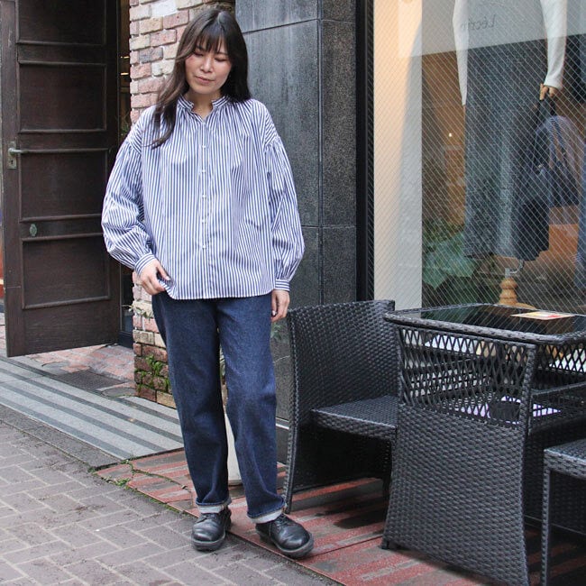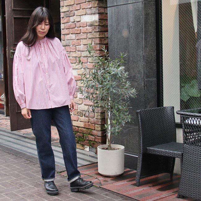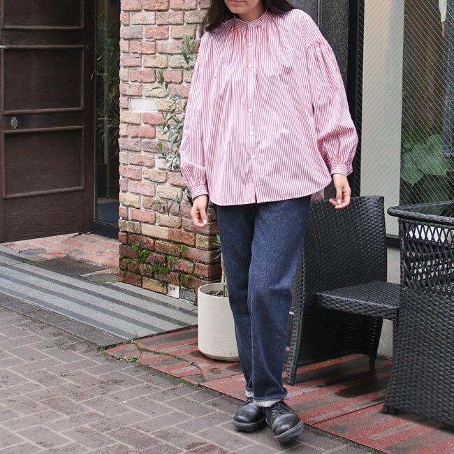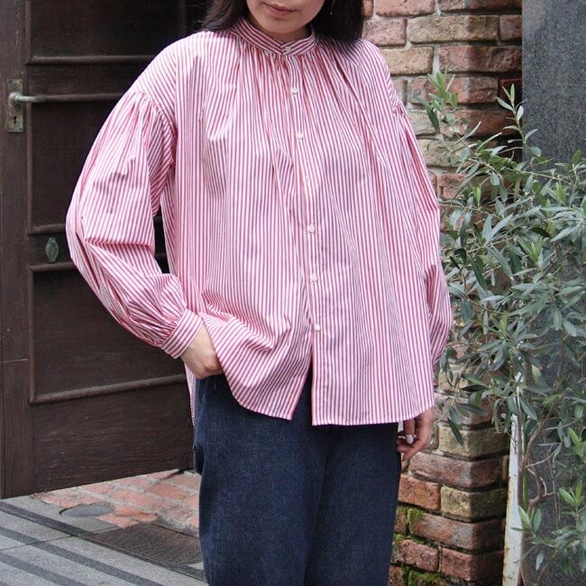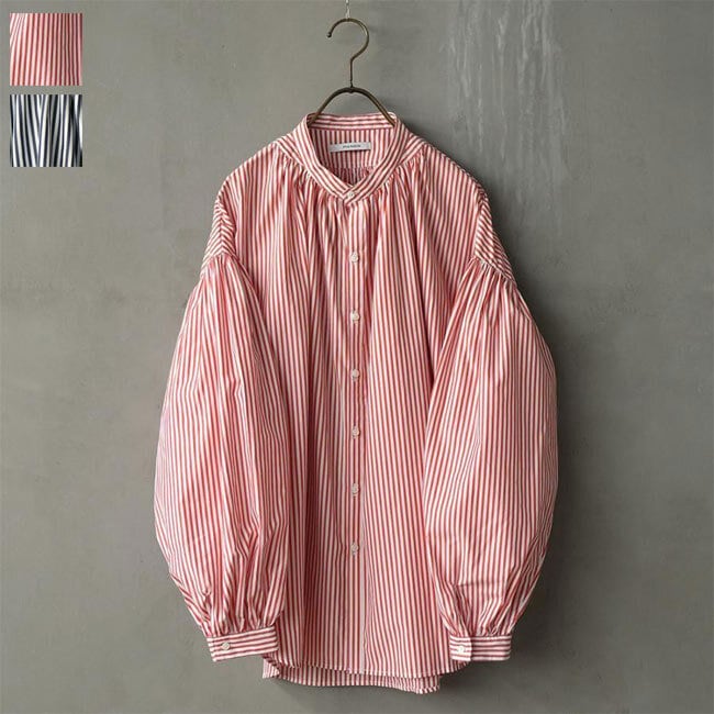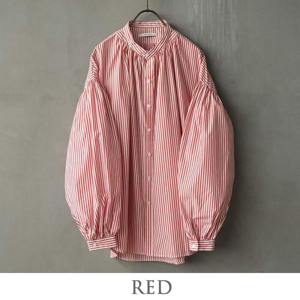 マノン MANON 【 ストライプ アミカルシャツ 】 mnn-sh-307 / レッド ネイビー 赤 紺 シャツ ブラウス トップス 羽織り レディース ストライプシャツ 長袖 春 ギャザー バンドカラー ゆったり おしゃれ オフィス カジュアル ナチュラル 服 ミドル丈 おしゃれ オシャレ オーバーサイズ 仕事 綿100% 日本製 ( 返品交換送料無料 )【正規取扱店】