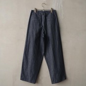 テーパードシルエットのデニムパンツ。