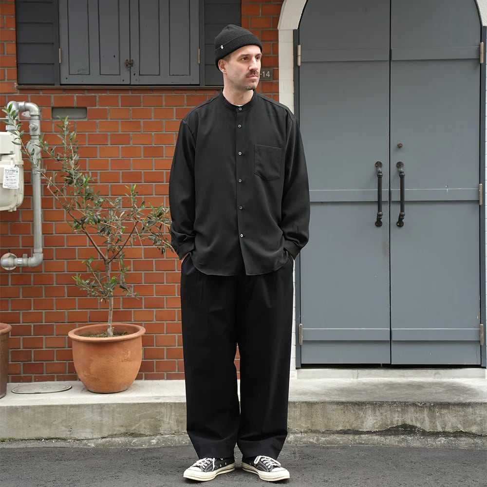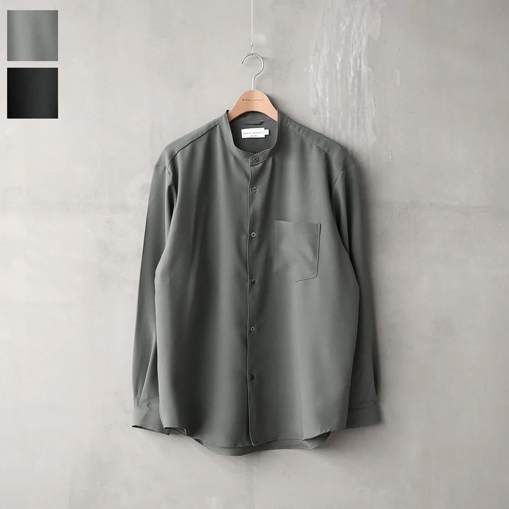 MANUAL ALPHABET ( マニュアルアルファベット ) RELA×ION TWILL WIDE BC SHIRTS MA-S-812 リラクション バンドカラーシャツ / ブラック 黒 チャコールグレー 日本製 長袖 無地 春 夏 秋 冬 オールシーズン シーズンレス 人気 カジュアル きれいめ かっこいい おしゃれ オシャレ お洒落 大人カジュアル 上品 お出掛け デート 着回し 綿 高品質 丈夫 羽織り | MIO FIDANTO