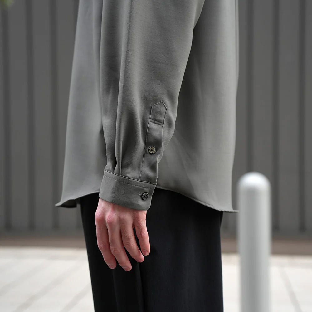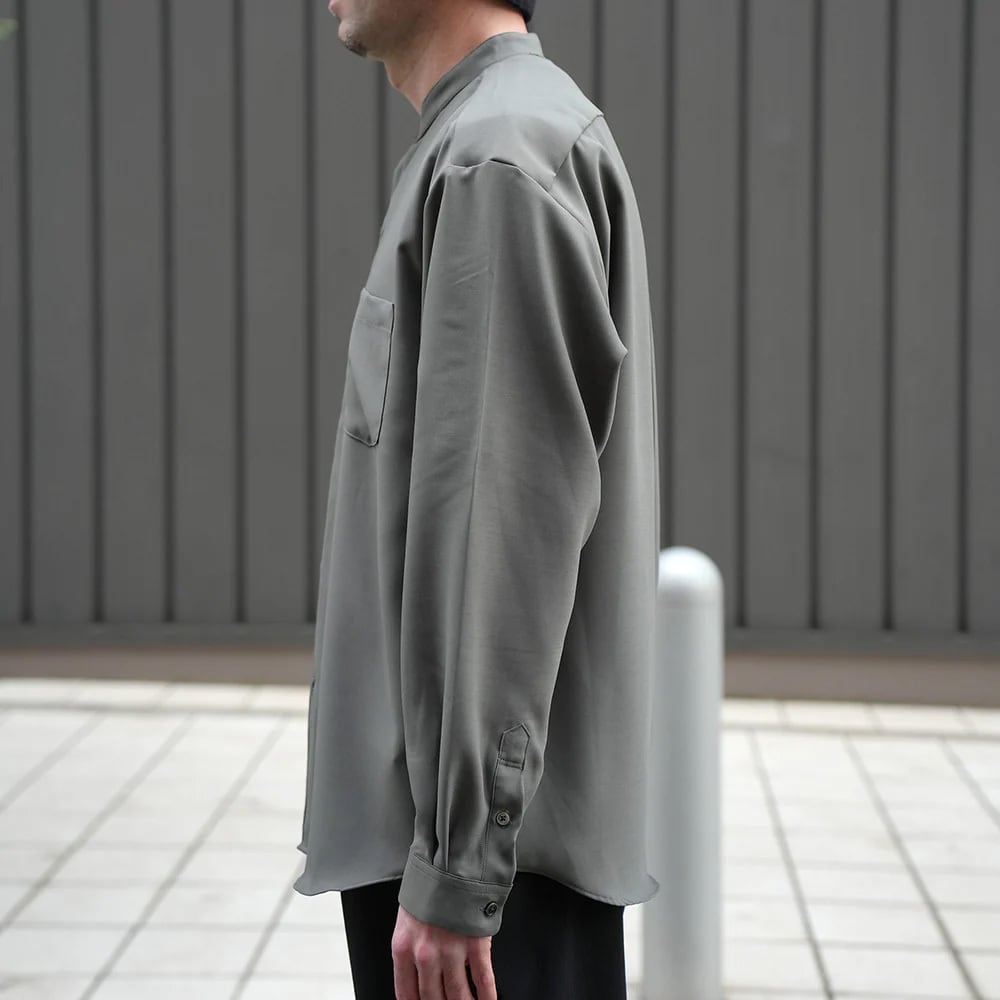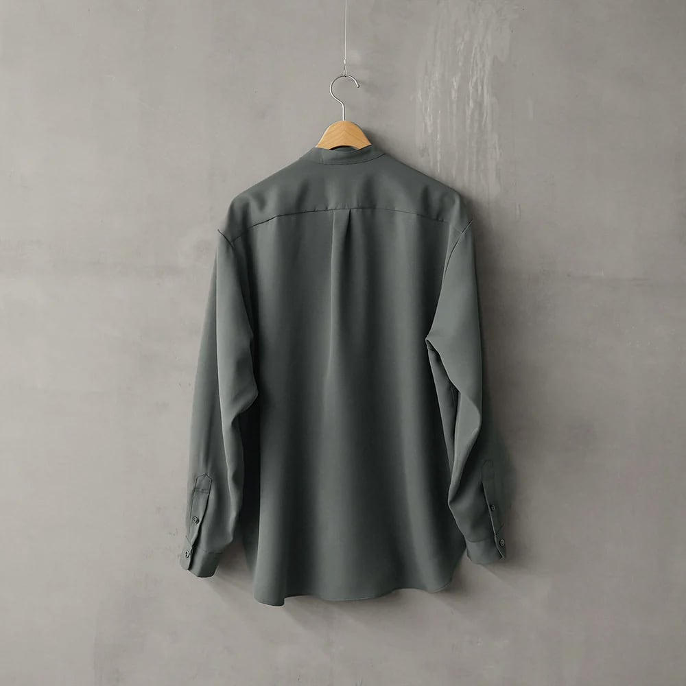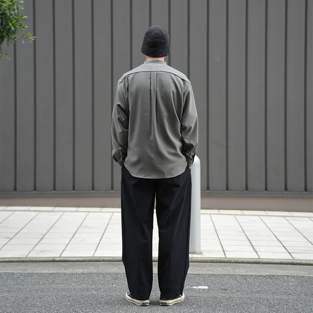 バンドカラーのワイドシャツ。