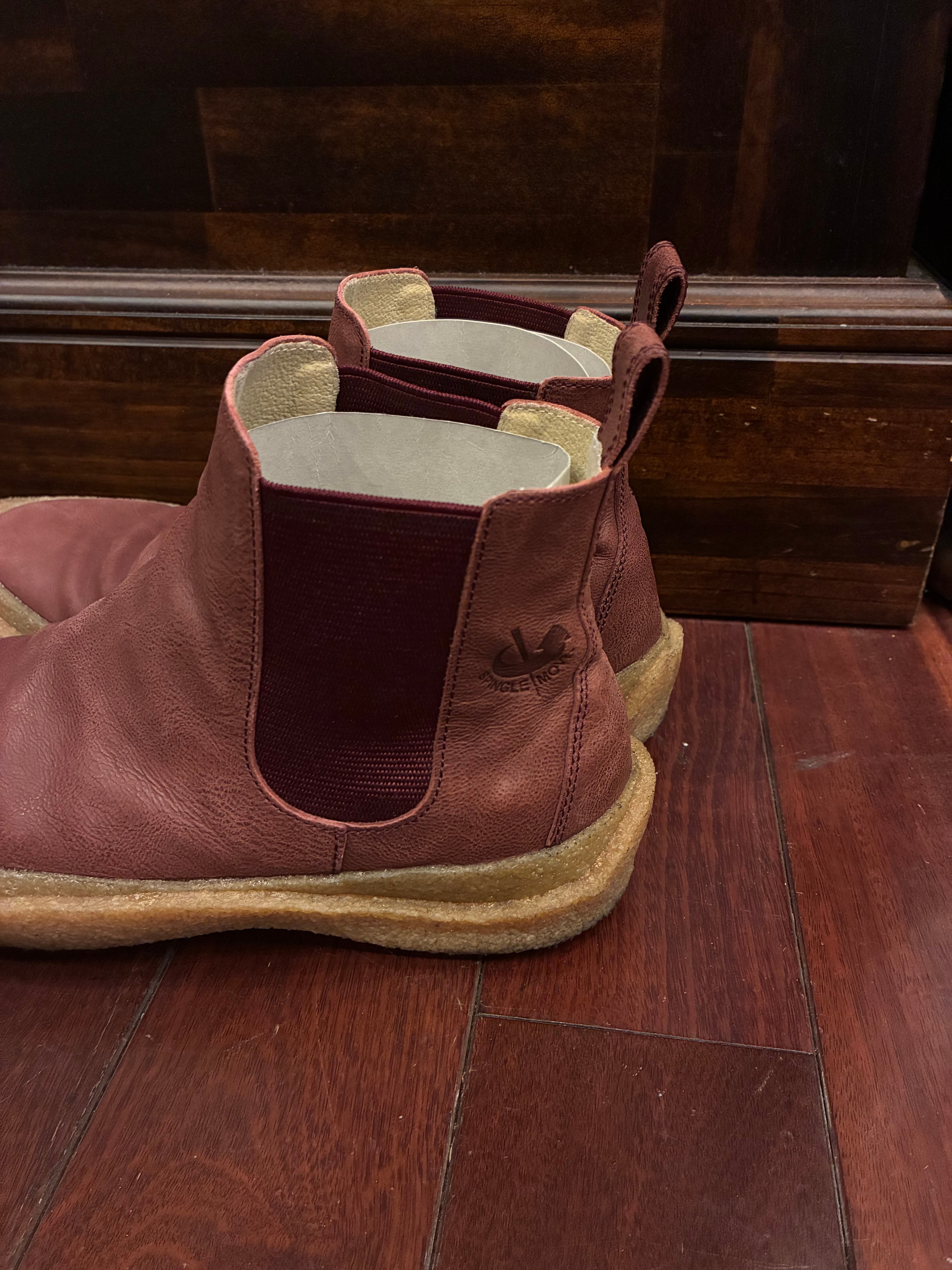 ソール: 天然ゴムから成るクレープソール(生ゴムソール)を採用しており、クッション性とグリップ力に優れています。