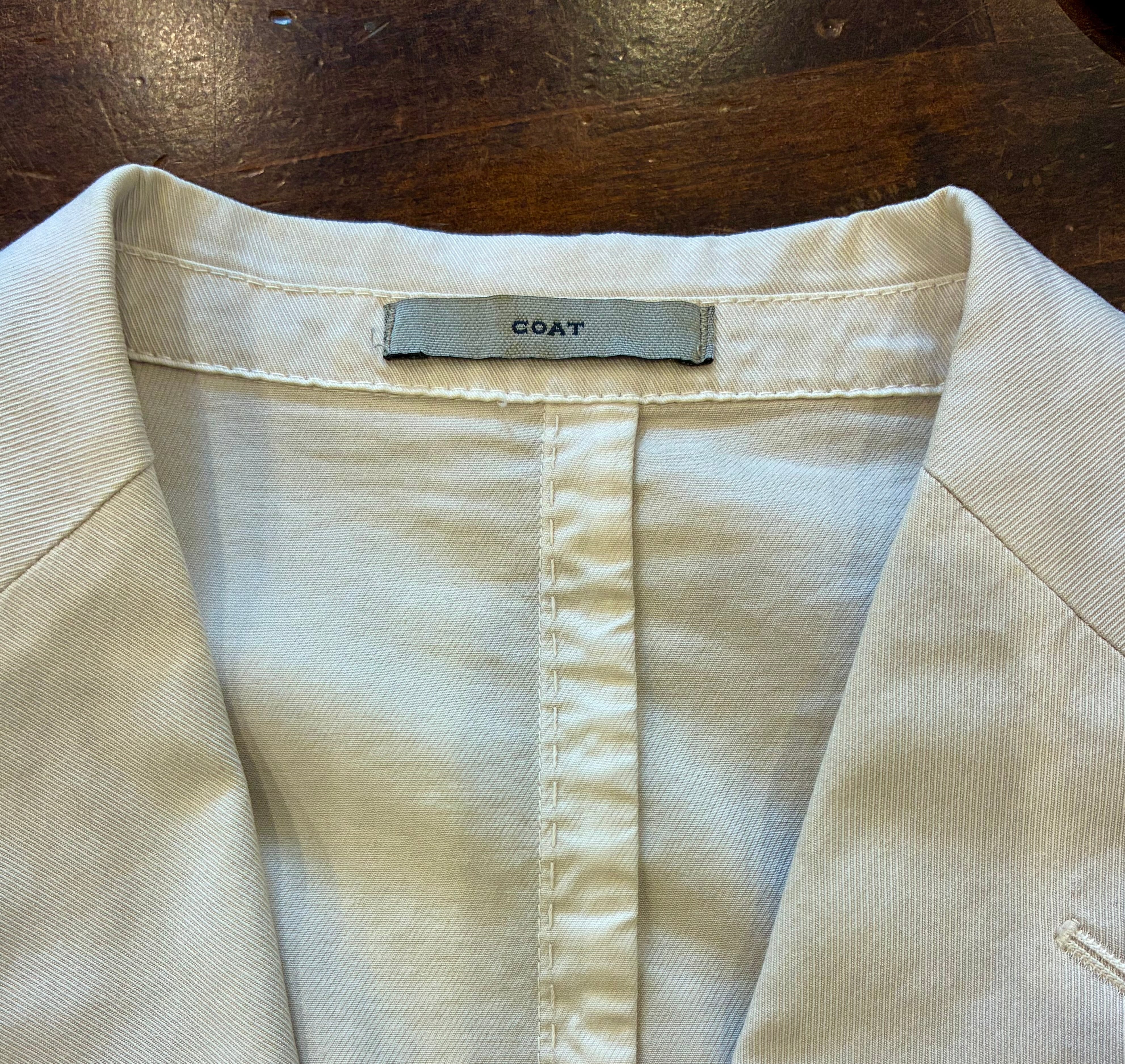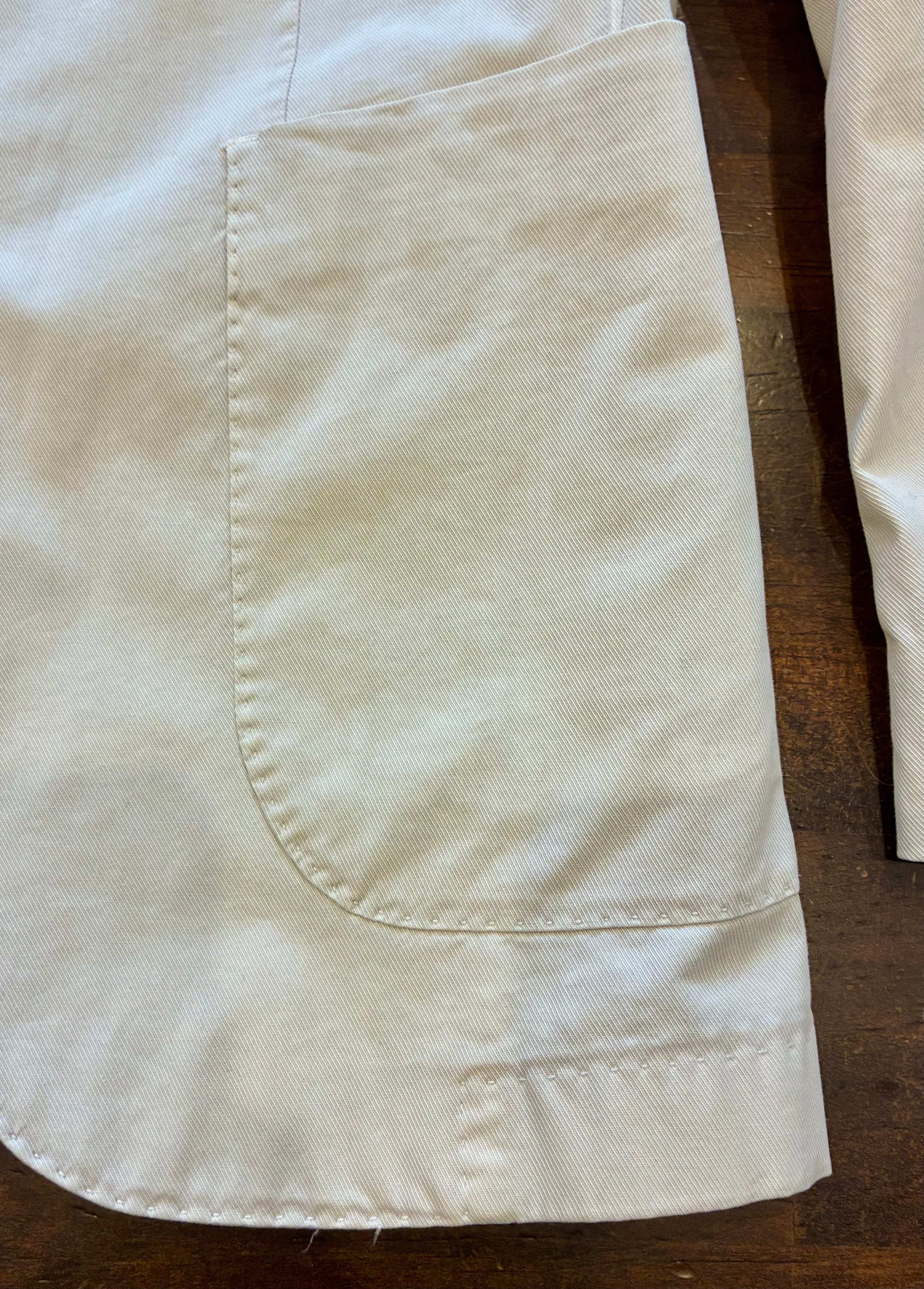 軽やかなコットンストレッチ素材、上品なアイボリーカラーで、