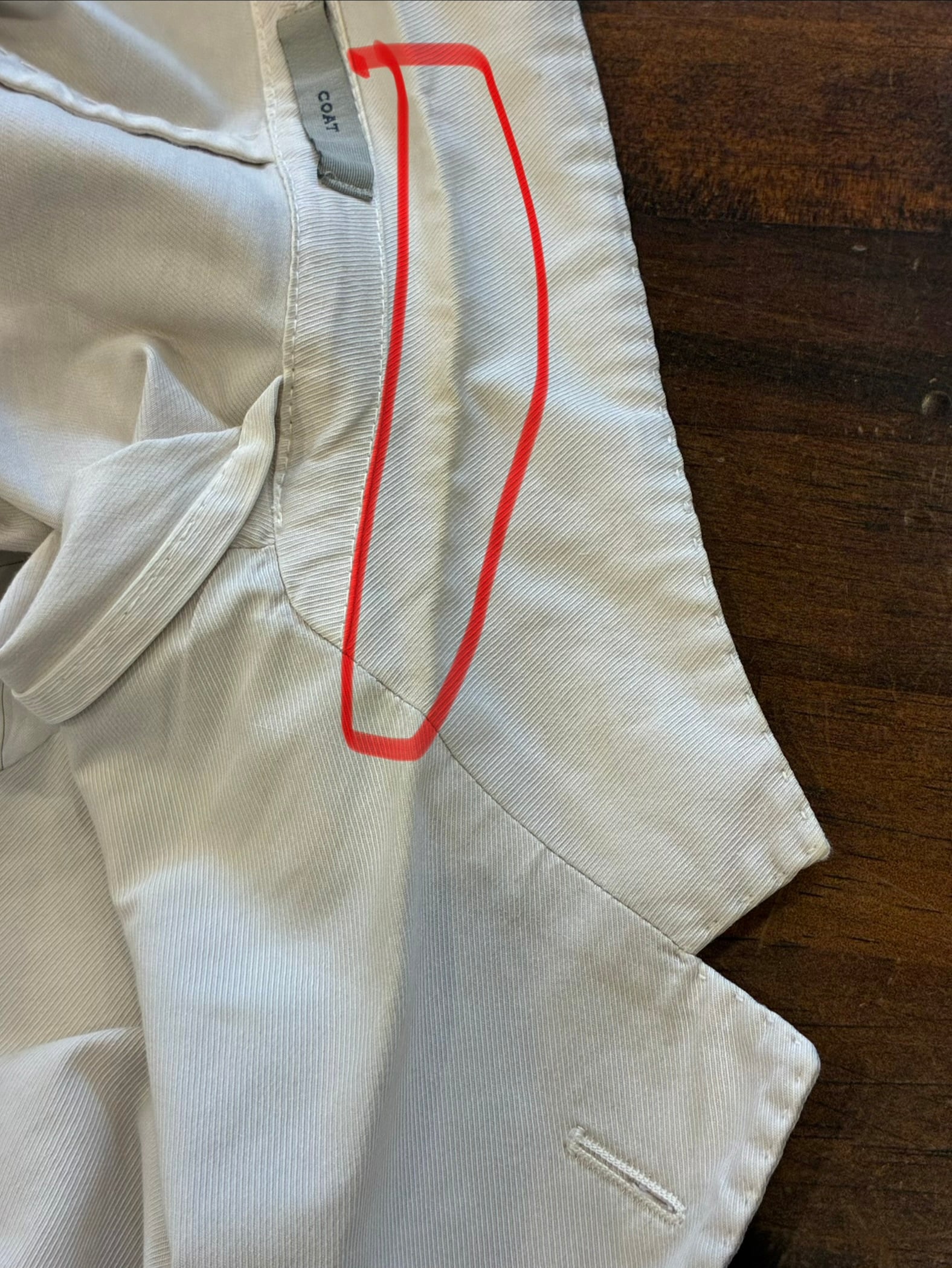 襟の折り目、汚れ有り(写真赤丸参照)