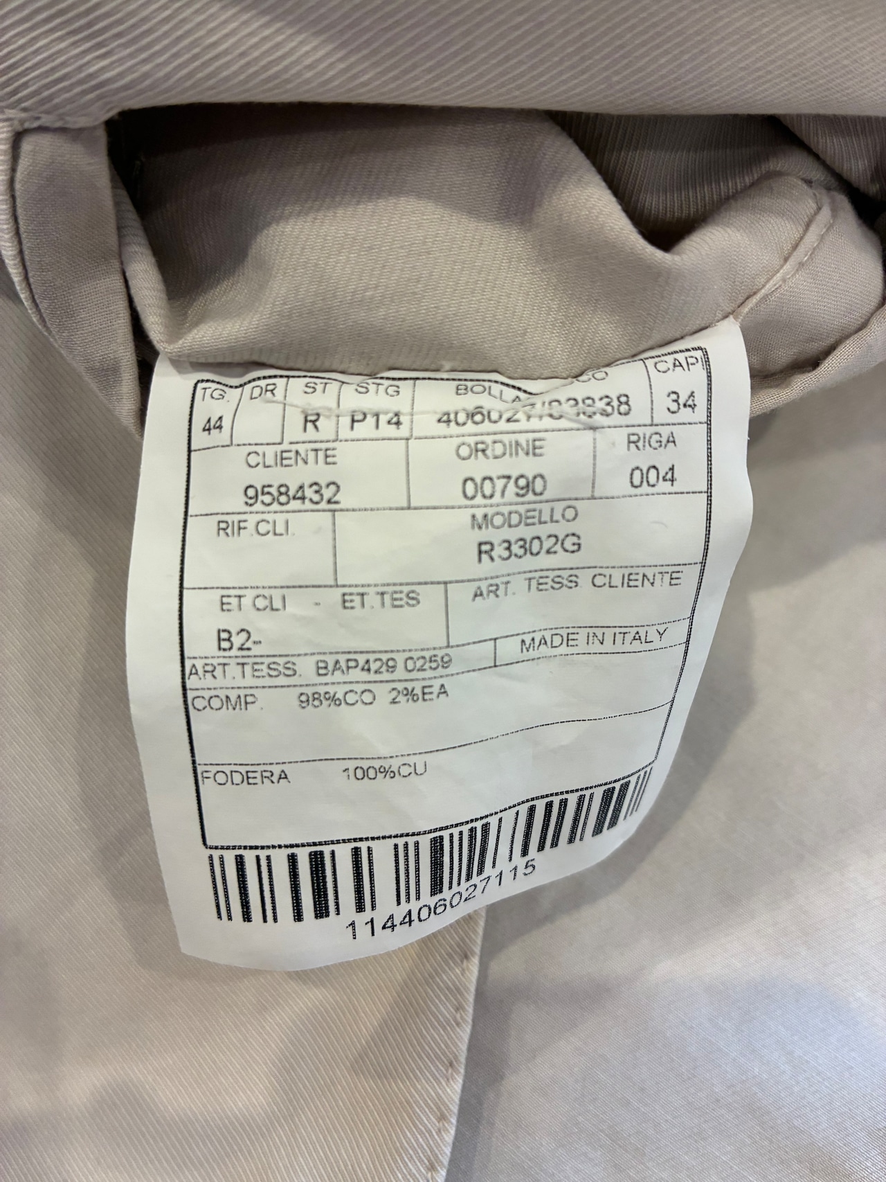 イタリアらしい柔らかい仕立てで、