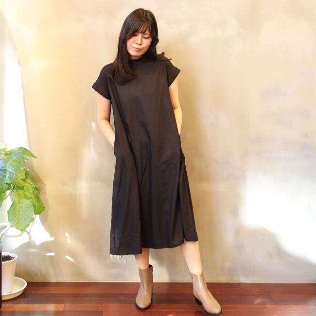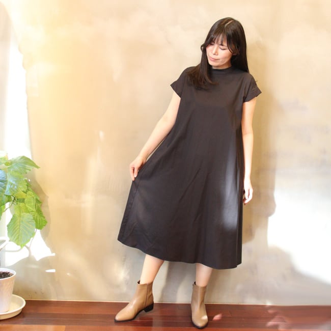 程よく広がるシルエットで、1枚でさらっと着られる大人のワンピースです。
