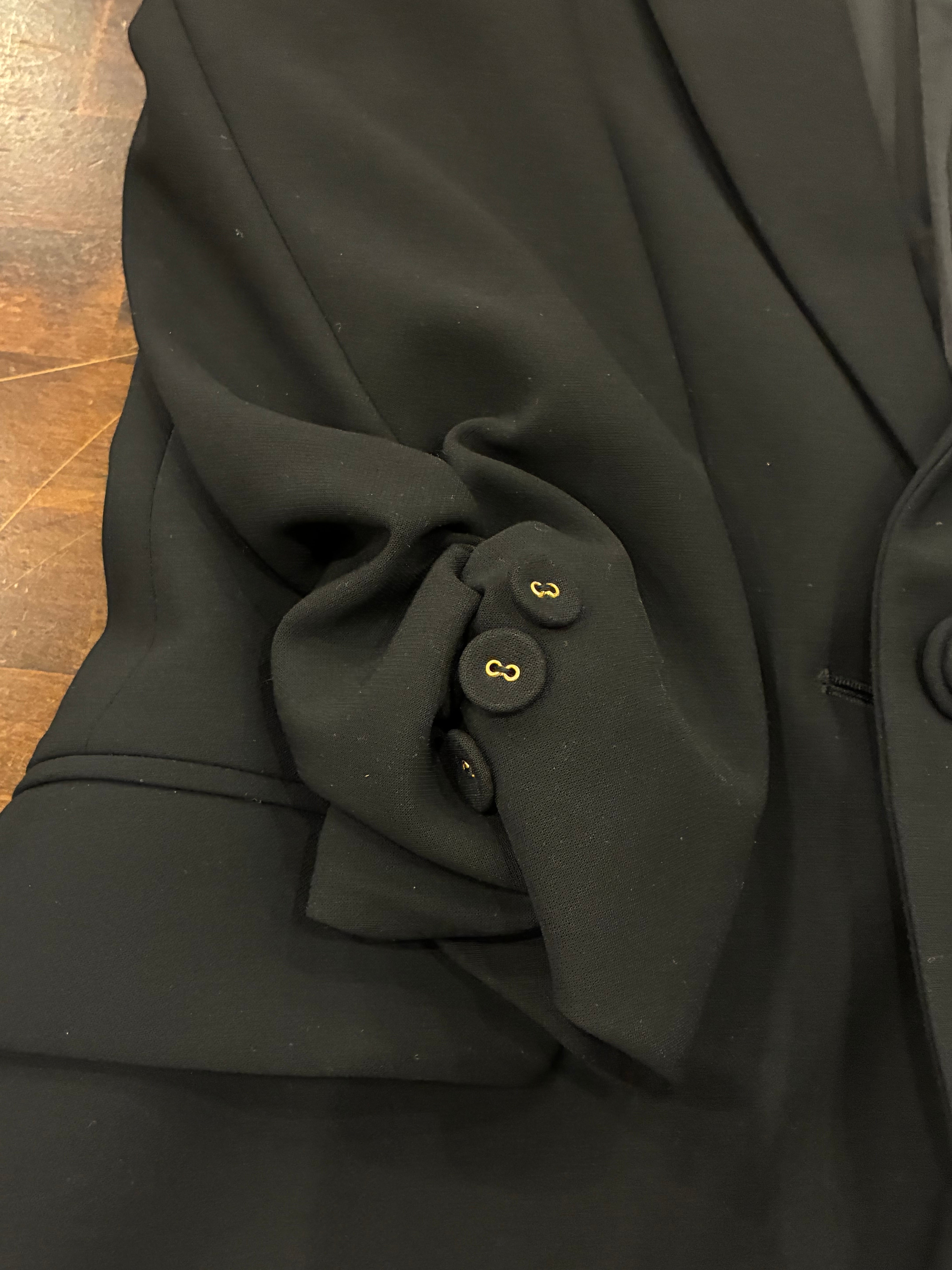袖をたくし上げたようなデザインの袖口が印象的な一着です。