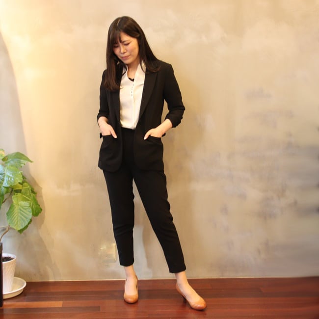 ストレッチ性があり動きやすく、シワになりにくいのも嬉しいポイント。