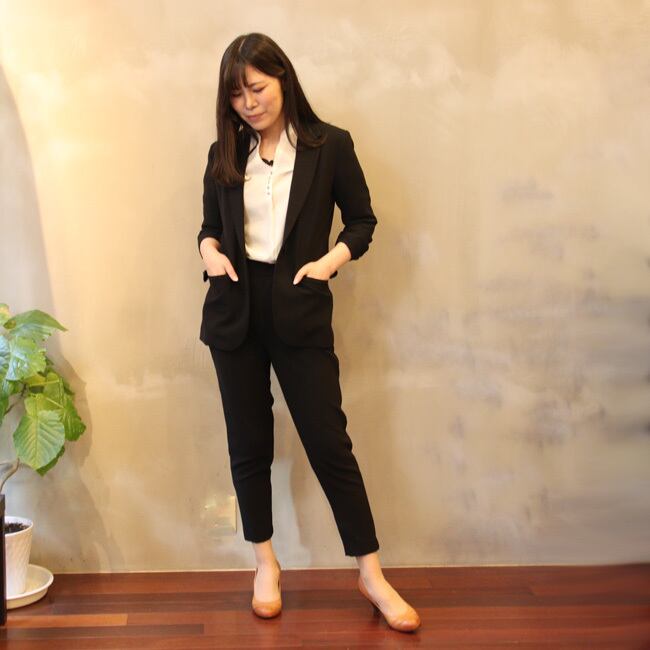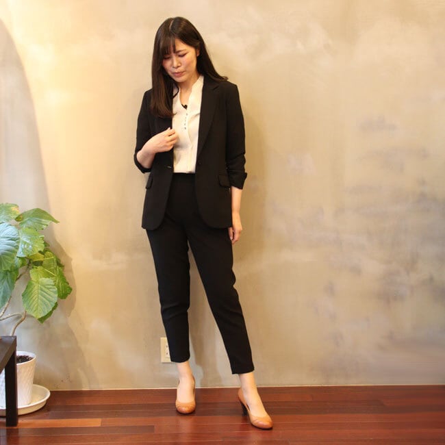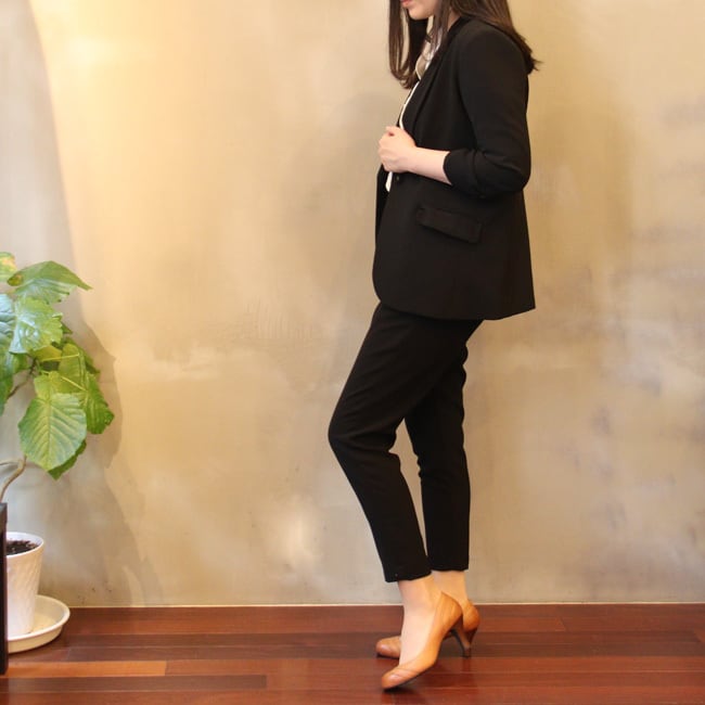 同素材のテーラードジャケットとセットアップでの着用も可能です。