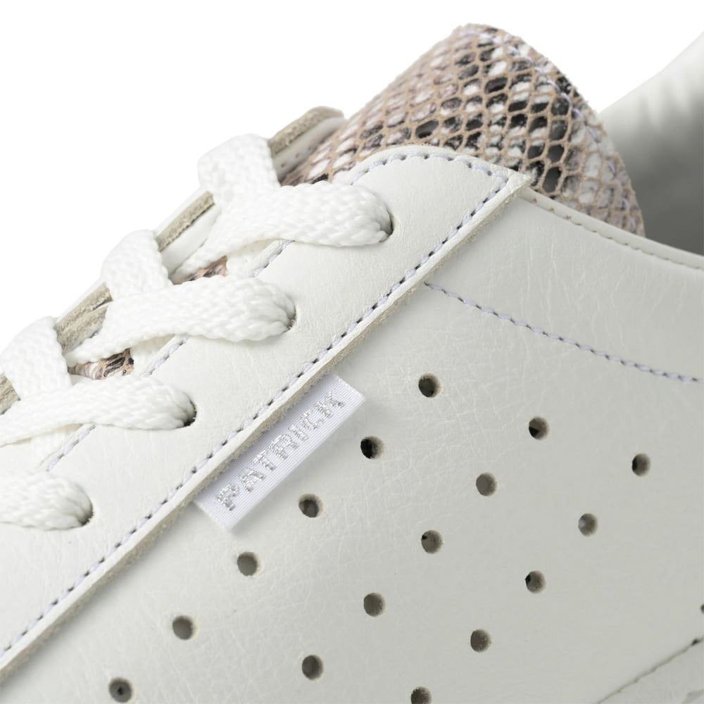 それぞれ異なる表情を持ちながら、共通のヘビ柄ディテールで統一感を演出。ホワイトベースなので幅広いコーデに溶け込み、長く愛用できる万能さを備えています。