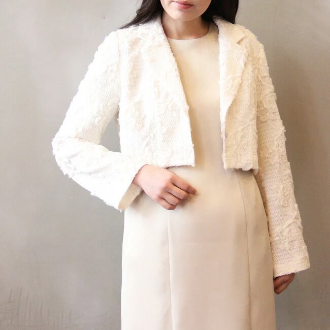 kaene ( カエン ) コード ジャガード ジャケット 36サイズ / オフホワイト 白 アウター 春 夏 秋 冬 卒業式 入学式 結婚式 二次会 フォーマル オケージョン お呼ばれ 同窓会 柄 レディース 服 ドレス 長袖 【 005352 】( 返品不可 )