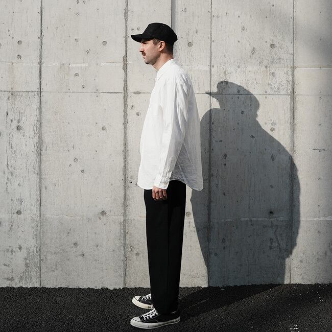 ワイドなシルエットながら裾口を少しテーパードをかけることで収まりの良いデザインとなっています。